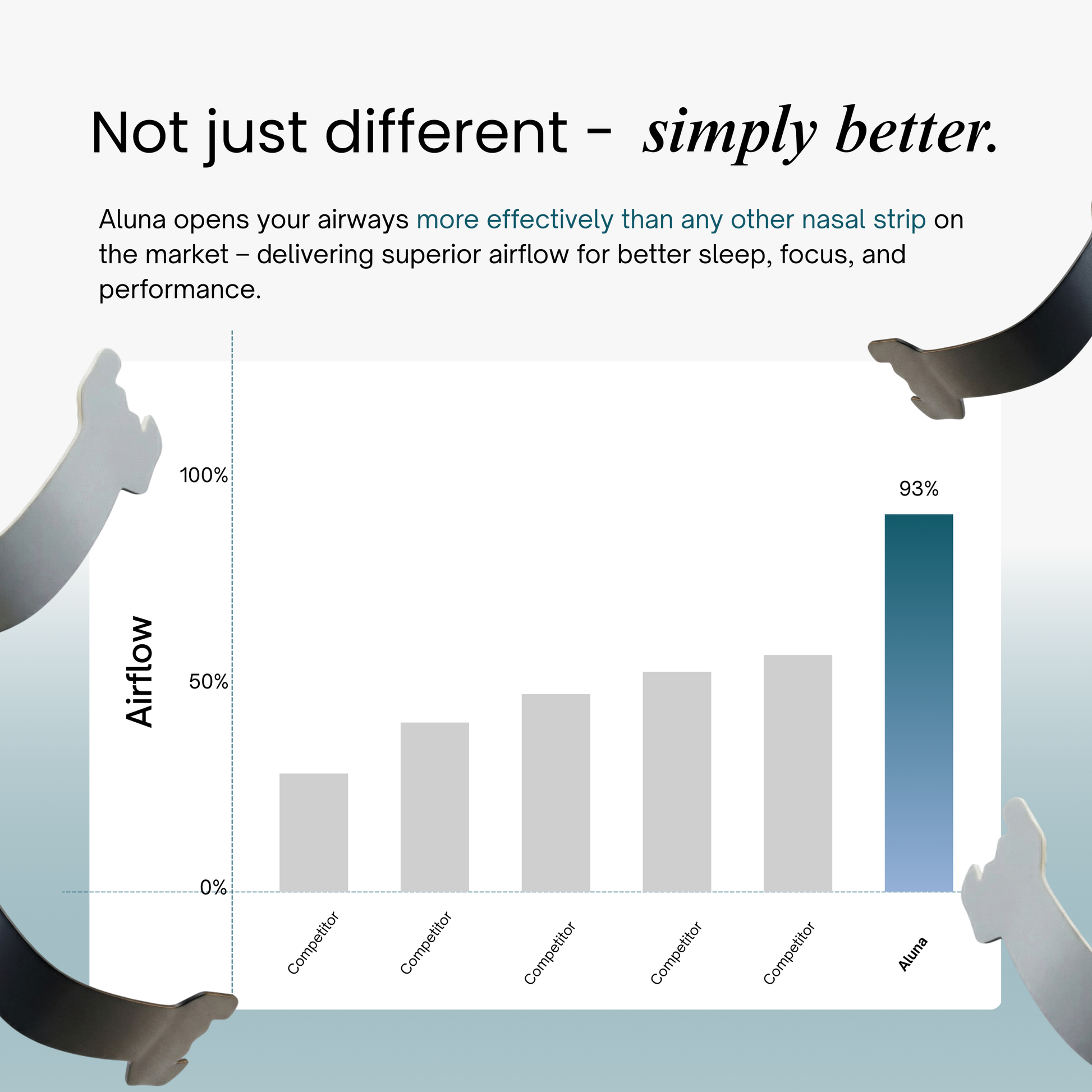 If you struggle with snoring, restless sleep, waking up with a dry mouth, or want to enhance your workouts; the Aluna nasal strip is perfect for you! For those with a history of allergies, sinus issues, a deviated septum, or any condition that makes breathing a challenge, the Aluna strip could make a significant difference.